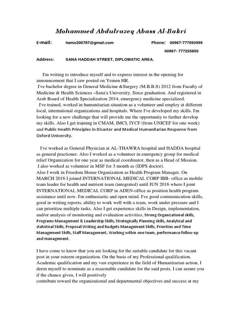 Our cover letter sample below will show you how to showcase these abilities. Why do i have to pay? the preparation of these letters or reports is not covered by the nhs. Medical doctors are in charge for examining patients, diagnosing their conditions, and recommending treatments. Improve your chances of getting noticed with a powerful cover letter. Get a gp referral to a hospital, specialist, or other health professional from a medicspot doctor. You will need to have previous management experience and be exceptionally organised and business minded to do this role. Browse 1,250+ cover letter examples for any profession. Sports medicine doctor cover letter example text version christopher annen. A cover letter needs to address everything about the advertisement: A doctor cover letter is a document that will support your resume. A cover letter can also showcase your winning personality and make other doctors eager to work with you. State why you're excited about the job and the company, and how the job matches your career goals. Dear director crouch as a highly skilled physician i read your posting for a new physician with interest.